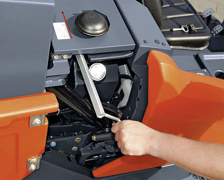 - Höchste Maschinenverfügbarkeit durch robustes Chassis und Schutz der Besen vor Beschädigungen