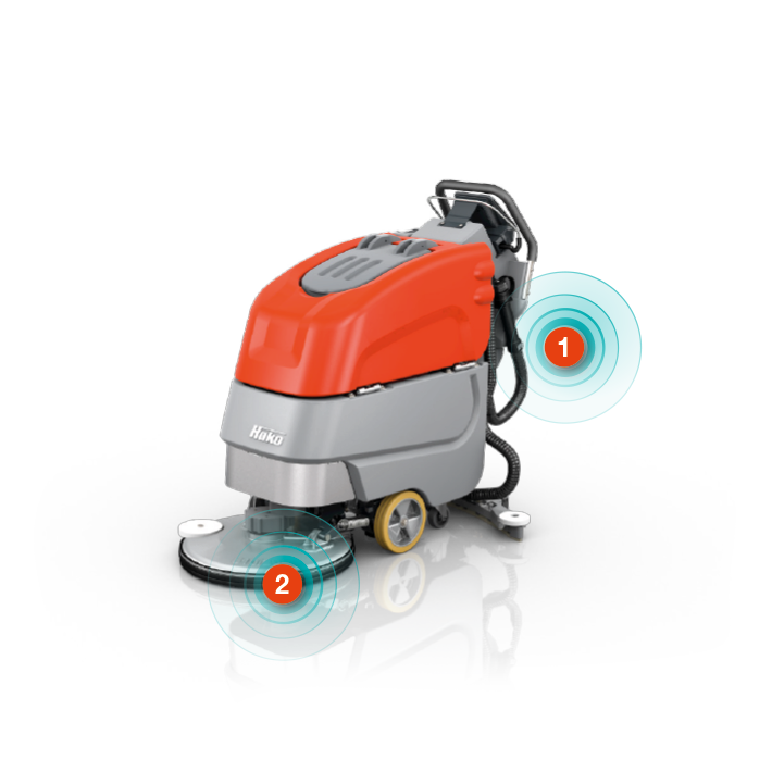 Gestiegene Hygieneansprüche erfordern eine noch gründlichere Reinigung – in der gleichen Arbeitszeit. Mit Hako-AquaControl lassen sich im Einsatz bis zu 50 % Wasser und damit vermehrte Unterbrechungen für die Tankentleerung und -befüllung sparen.