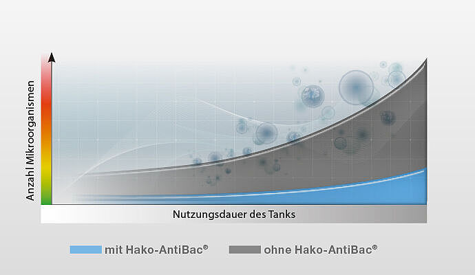 Reinigungstechnik von Hako kann nicht nur zur Desinfektion von Boden- und Oberflächen eingesetzt werden. Auch die Hygiene der Maschine selbst kann verbessert werden: zum Beispiel durch die Ausstattung des Frisch- und Schmutzwassertanks mit Hako-AntiBac®. Die innovative antibakterielle Tankausstattung schützt den Kunststoff und sorgt zusätzlich für eine verringerte Pilz- und Bakterienentwicklung im Tanksystem. So lassen sich hohe Hygieneansprüche in der Maschine mit geringem Reinigungsaufwand wesentlich leichter erfüllen.