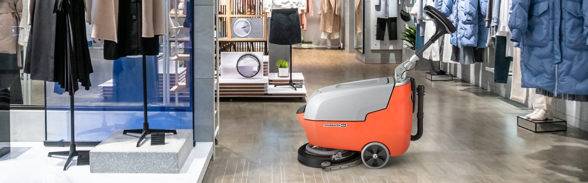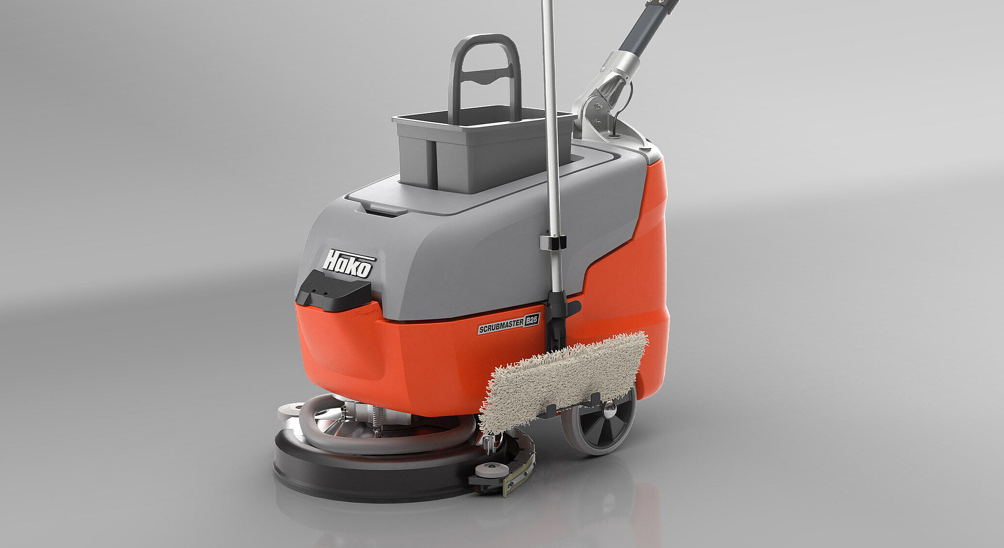 Der Scrubmaster B25 verbindet Leistungsstärke mit Bedienkomfort in kompakter Form. Mit einer Arbeitsbreite von 43 cm können Flächen schnell, effizient und gründlich mit Tellerbürste oder Pad gereinigt werden. Dabei unterstützen viele durchdachte Details den Anwender bei seiner täglichen Arbeit. Zum Beispiel der ergonomisch geformte, stufenlos höhenverstellbare Bedienholm für rückenschonendes Arbeiten, die gute Zugänglichkeit aller Komponenten für tägliche Servicearbeiten oder die Abdeckung des Frischwasser-Einfüllstutzens, die als Dosierhilfe für die Reinigungschemie fungiert.